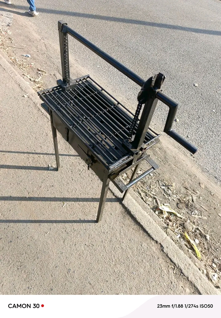 A charcoal choma jiko is a commercial or domestic grill designed for charcoal-based cooking. It features a sturdy frame, a grill surface, and a compartment to hold burning charcoal. The design ensures even heat distribution, allowing food to cook thoroughly while retaining the smoky flavor that charcoal provides.