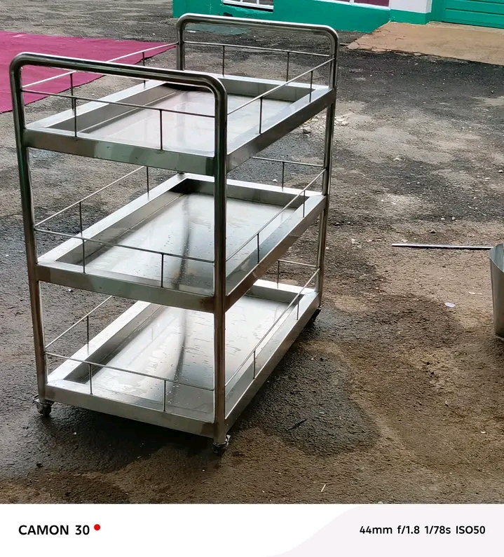A stainless steel hospital trolley is a mobile storage and transport unit designed specifically for medical environments. It is constructed from high-quality stainless steel to resist corrosion, moisture, and frequent cleaning. Equipped with multiple shelves or compartments, it allows organized transport of medical instruments, medications, and other essential supplies.